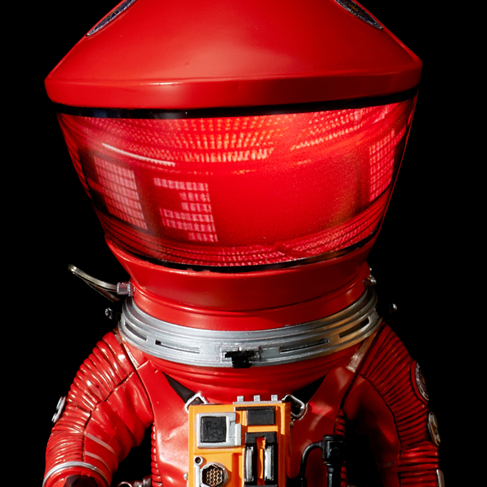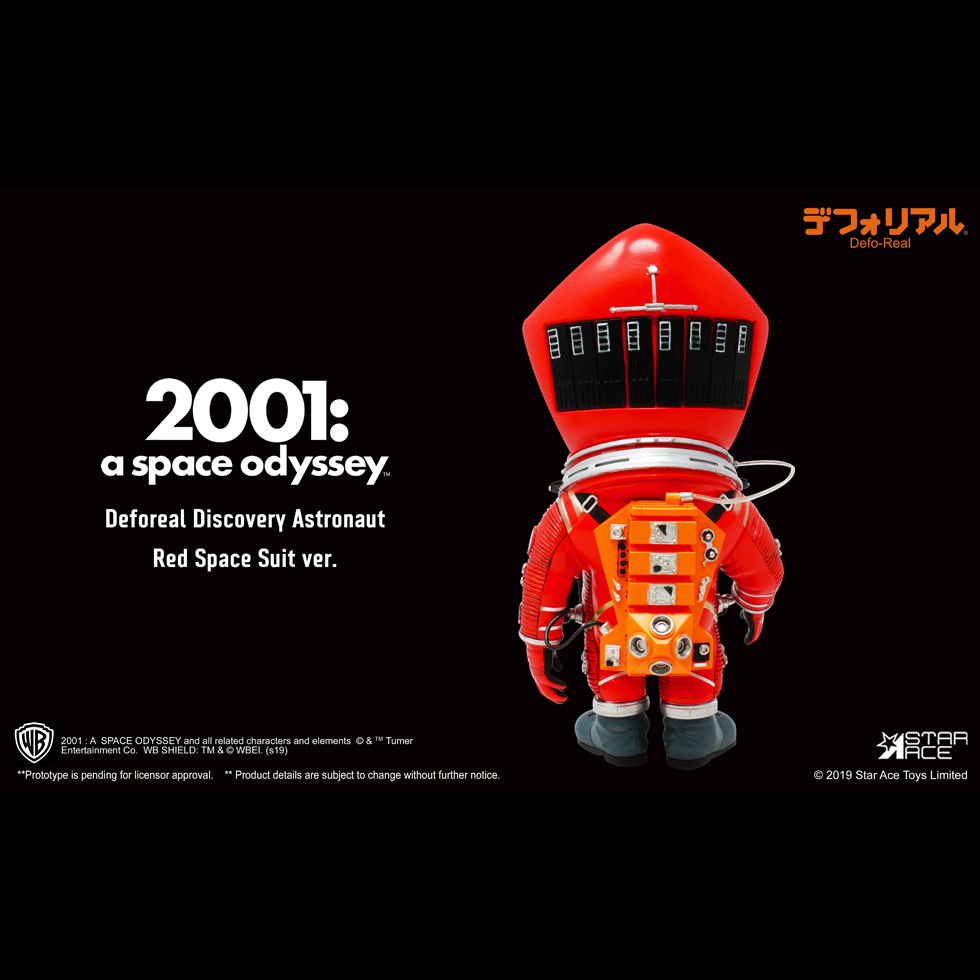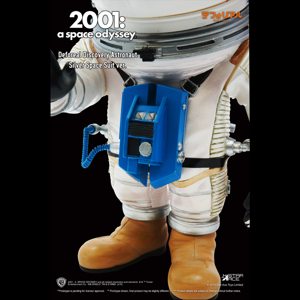 Defo Real figures are unique and artistic soft vinyl statues featuring accurately sculpted, oversized heads on realistically proportioned bodies. The DF Astronauts are about 15 cm (6 inches) tall with space suits and helmets with authentic details modeled directly from the film. Iconic images from 2001 will be seen reflected in the helmet visors.